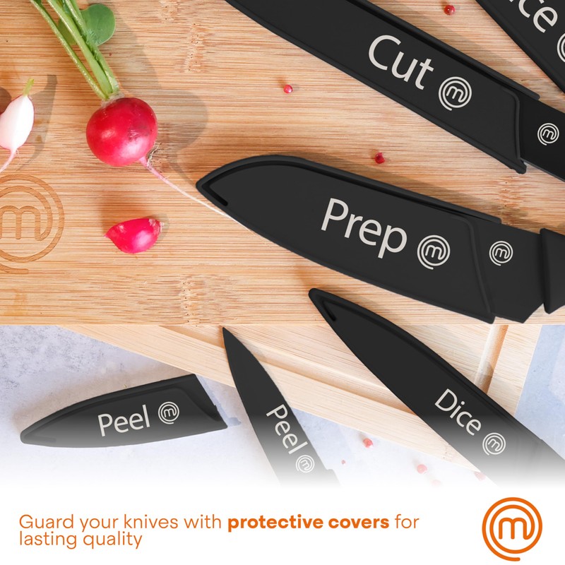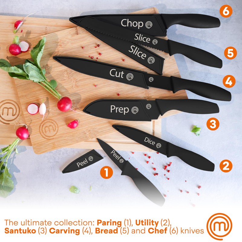 - OFFICIAL MASTERCHEF PRODUCT - This professional quality 6 piece knife set with blade guards is an official product of MasterChef the TV Series.