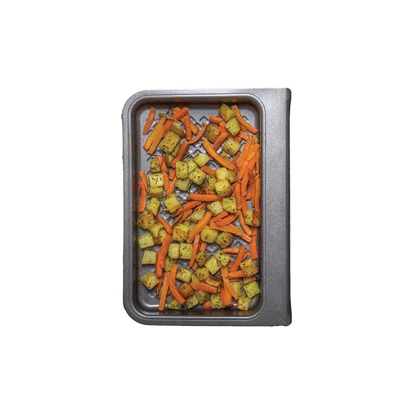 - NON-STICK The scratch resistant non-stick roasting surface ensures easy cleaning and food release without heavy greasing. Ideal for roasts, baking trays and reheating food