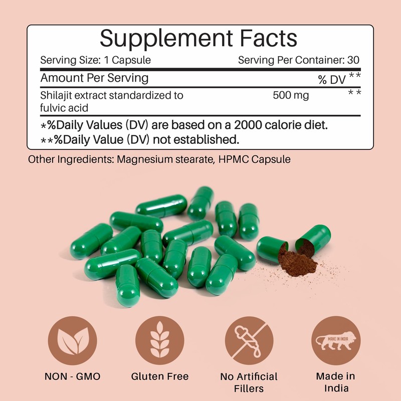 - ⚖️ Just the Right Strength – 500mg Per Capsule Each capsule delivers 500mg of pure, gold-grade Shilajit—ideal for daily wellness without overloading your system. A balanced dose designed for consistent energy, clarity, and vitality.