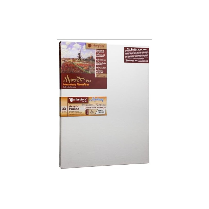 MASTERPIECE Z1MM-1724 Monet Pro 1.5" Deep Monterey 10.5 oz Cotton Medium Texture Stretched Canvas 17" x 24" White