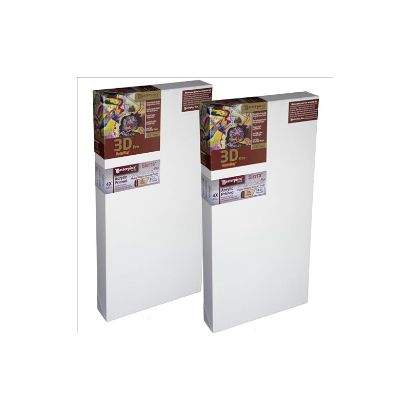 MASTERPIECE Z2DE-1321 3D Pro 2.5" Deep Sierra Heavy Weight Medium Texture 14.6 oz Cotton Stretched Canvas 13" x 21" White 2 Pack