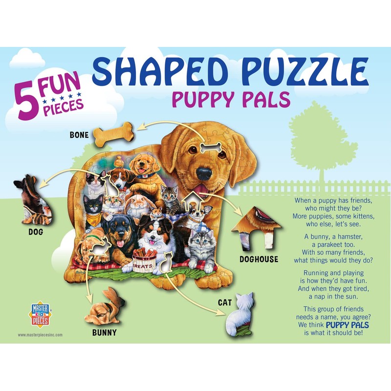MasterPieces 100 Piece Shaped Jigsaw Puzzle for Kids - Pets Pals - 14"x19"