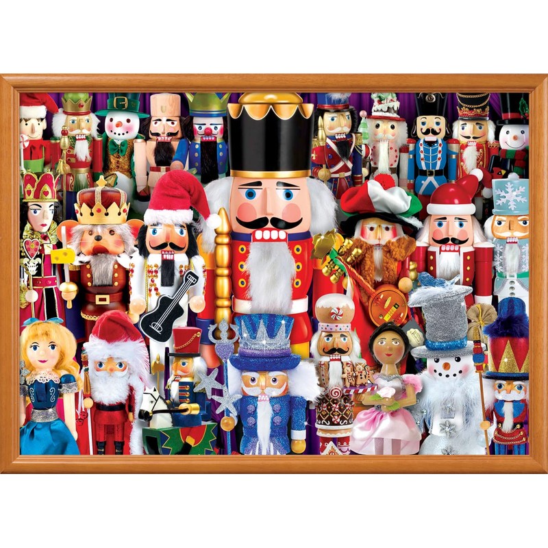 These Masterpieces 19.25" X 26.75" 1000Pc of nutcracker suite features the essence of true Holiday spirit with a collage of nutcrackers. Holiday puzzles are the perfect way to get into the holiday spirit, & the perfect holiday presents for friends & family. Cozy up around the table for some holiday family fun! To reduce their impact on our environment, the chipboard used in these puzzles is made of recycled material.For over 20 years, Masterpieces has enjoyed making quality jigsaw puzzles, games, toys & works of Ahhh craft kits. Innovation & premium quality is the Masterpieces Hallmark. We pledge to always provide earth friendly products. Our puzzles are made from recycled paper & soy based inks. Green is not just a color, it's a commitment.