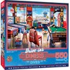 These Masterpieces 24" X 18" 550Pc of drive-ins, diners & dives are fun nostalgia puzzles. Take yourself back to a simpler time where classic cars rules The road & Be-Bop on the airwaves. Classic diners & drive ins still rules Friday night fun & even the occasional dive. To reduce their impact on our environment, the chipboard used in these puzzles is made of recycled material.For over 20 years, Masterpieces has enjoyed making quality jigsaw puzzles, games, toys & works of Ahhh craft kits. Innovation & premium quality is the Masterpieces Hallmark. We pledge to always provide earth friendly products. Our puzzles are made from recycled paper & soy based inks. Green is not just a color, it's a commitment.