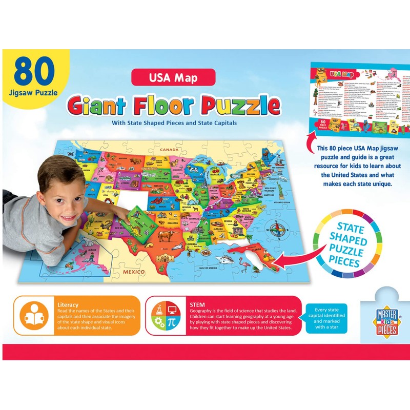 MasterPieces Floor Puzzle - Jumbo Size 80 Piece Jigsaw Puzzle for Kids - USA Map Shaped Puzzle - 3ftx2ft
