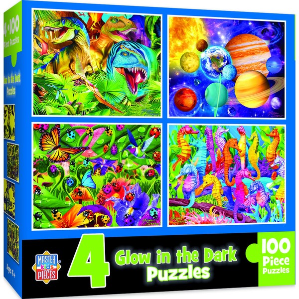 MasterPieces Puzzle Set - 4-Pack 100 Piece Jigsaw Puzzle for Kids - Glow in The Dark 4-Pack Blue - 8"x10"