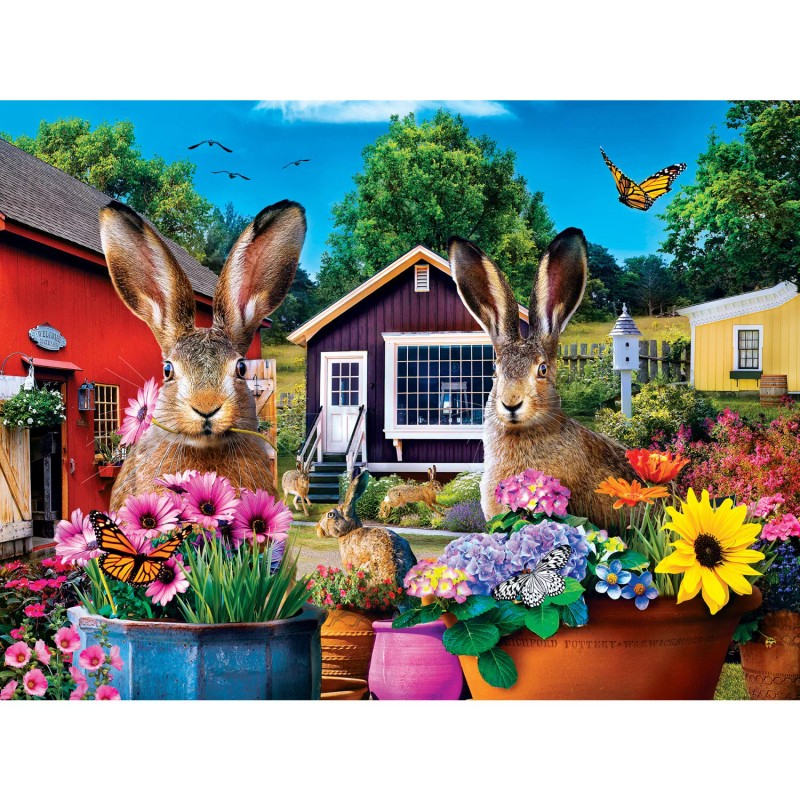 - A delightful family of rabbits busily potting vibrant plants in their quaint flower shop.