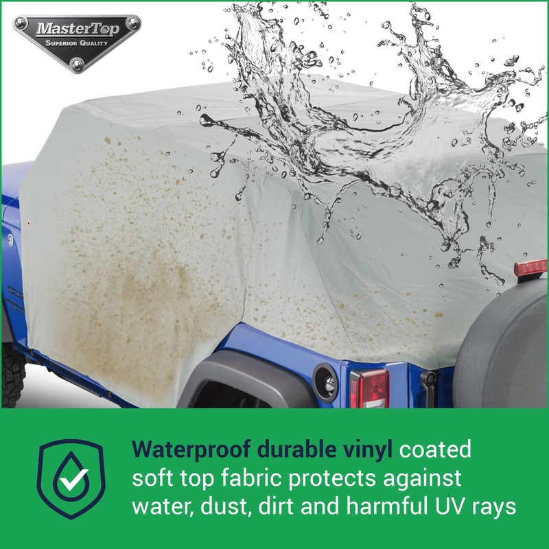 - WATERPROOF PROTECTION - this durable cover fits over your vehicle’s windshield and sports bars when your soft top or hardtop is removed providing protection from the sun and those sudden rain showers, UV rays, dirt, dust, and grime