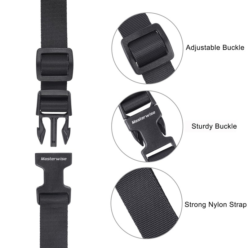 Masterwise Buckle Straps with Clips, Adjustable Nylon Straps with Buckle, Black 4 Pack (4‘x0.75“)