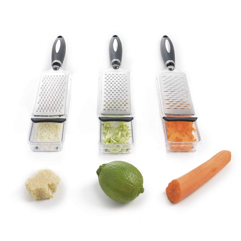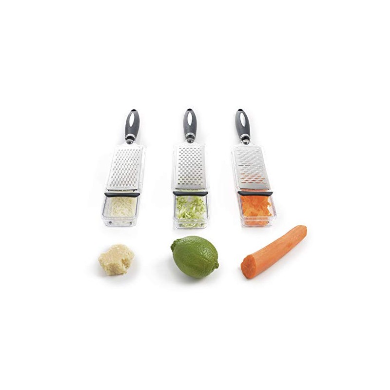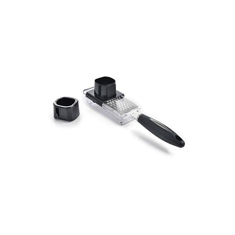 - Equipped with a guard, the rails slide on, guide grater without risk to the fingers; the button integrated connection option for the whole food without loss.