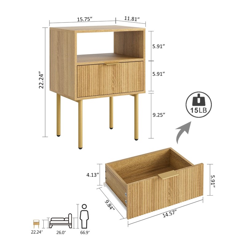 • Embrace an Modern Vibe:Mixing classic natural with matte gold, graceful lines,this nightstand emits an modern vibe in your bedroom. It can also catch eyes as a side table or end table throughout the home,adding elegance to home life.