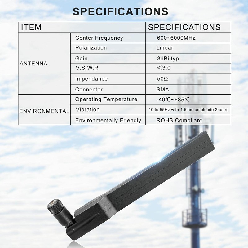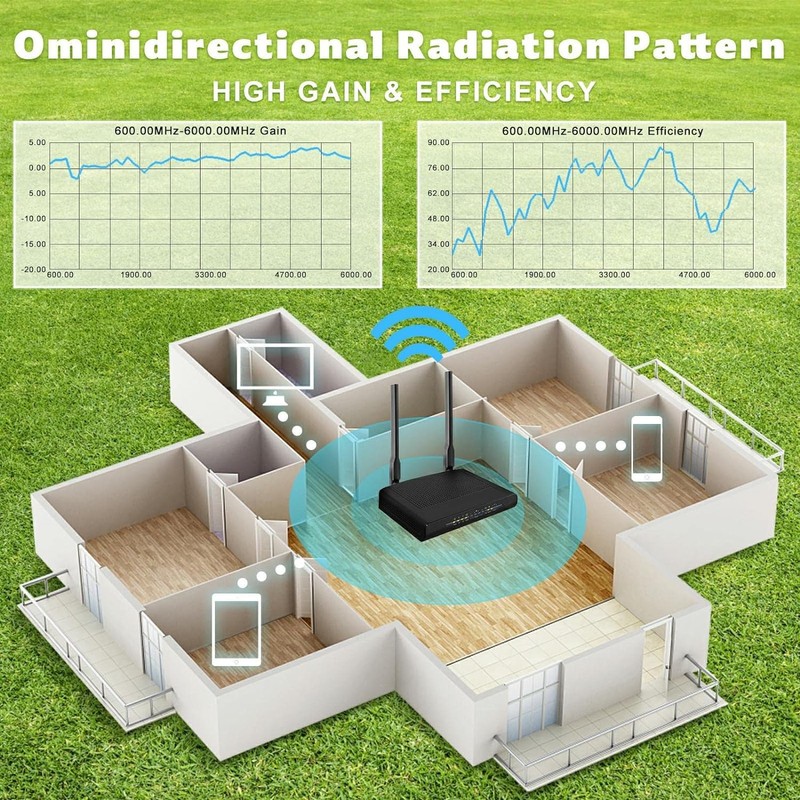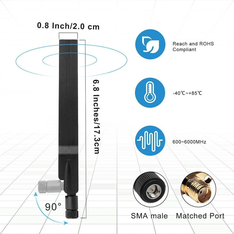- Full Band Design: Our antennas offer wide compatibility from 600 to 6000 MHz. It offers comprehensive coverage of the 5G, 4G, LTE, 3G, 2G, Bluetooth, WiMAX, Zigbee and WiFi 6 frequency bands and is a perfect match for all network operators around the world.