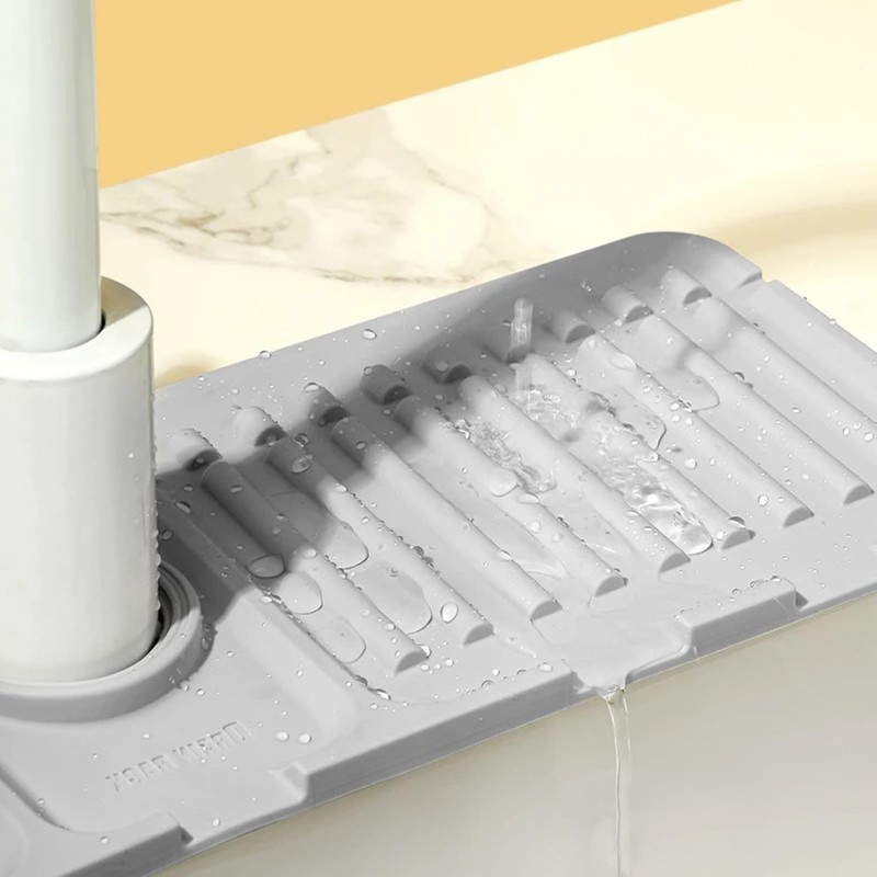 - (Sink guard and Draining): The Faucet Mat prevents stains caused by detergent, soap, or limescale on the top area of the sink, as well as those caused by direct contact with wet bottles, therefore the faucet mat keeps your sink area dry and clutter-free, perfect for those who cherish a neat cooking space.