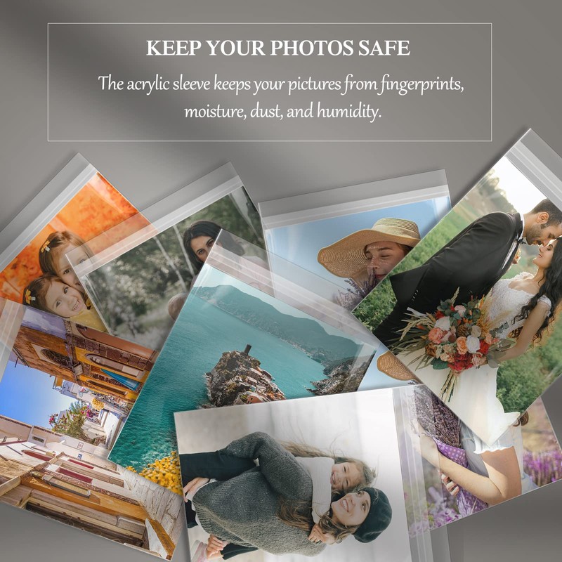 • Crystal Design: These protective sleeves keep your photographs safe without adding bulk or diminishing clarity. The thin, optical-quality plastic keeps your colors rich and your finish glossy.