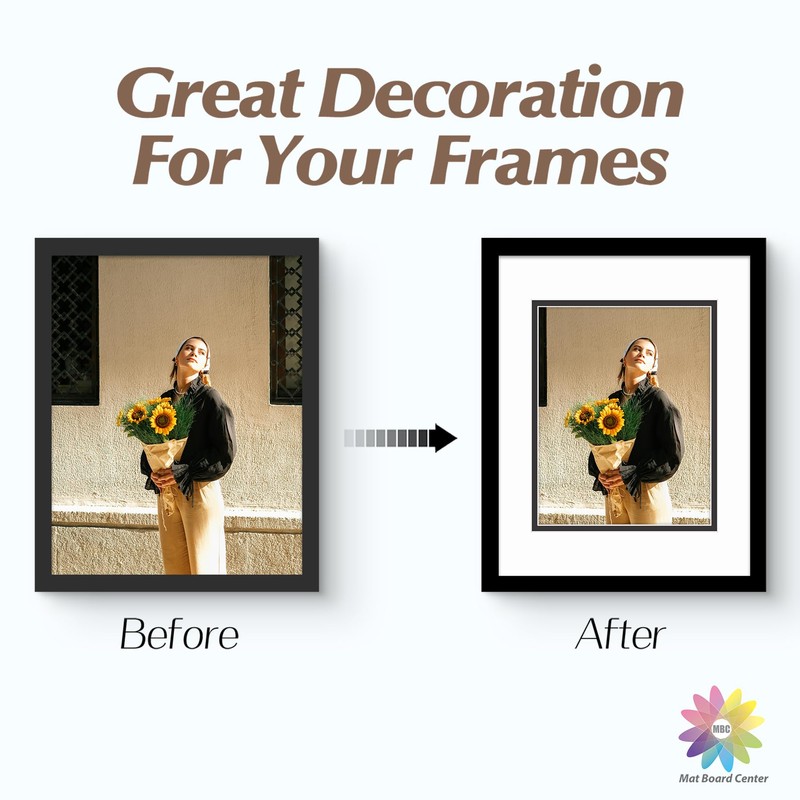 - Perfect for framing all your photographs or prints; Mats can be used along with a frame for extra protection from deterioration. With a variety of sizes to choose from, coordinating a picture and frame has never been easier!