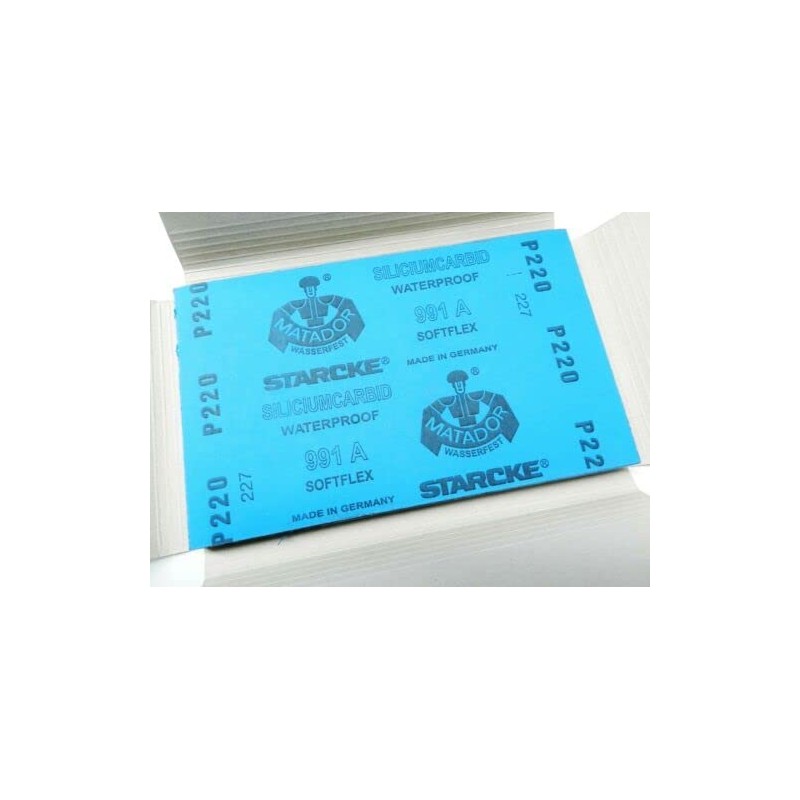 Matador Abrasive Wet or Dry Sandpaper 50 Sheet 220 Grit 5-1/2" x 9" Silicon Carbide Made in Germany