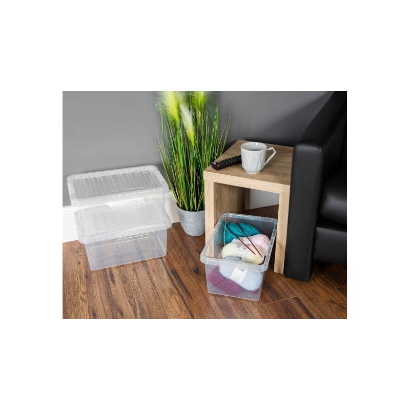 - Clear plastic storage bins allow for easy to Find of contents without the need to open them. They are used for storing other household items.