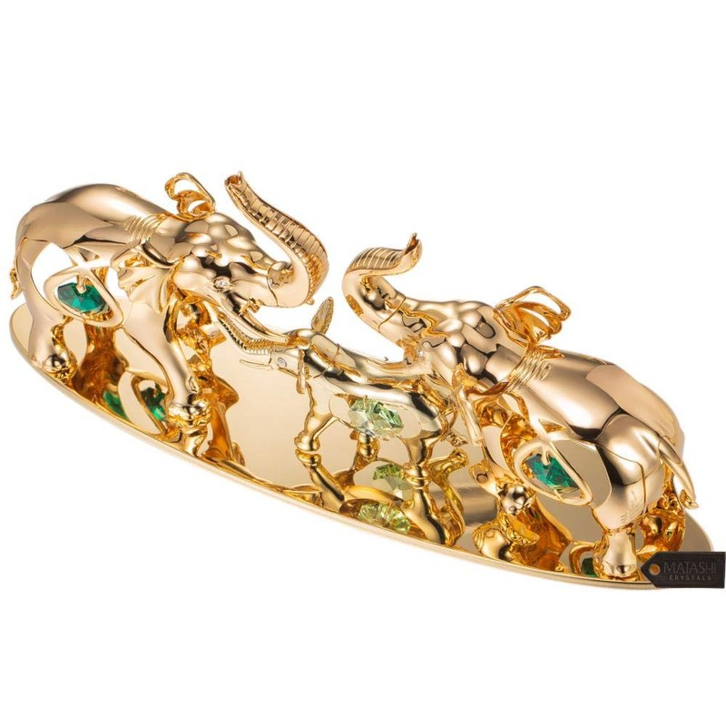 Matashi 24K Gold Plated Elephants Ornament with Crystal Tabletop Home Decor Office Desk Showpiece - Gift for Mother's Day Wedding Anniversary Christmas Birthday Housewarming Present