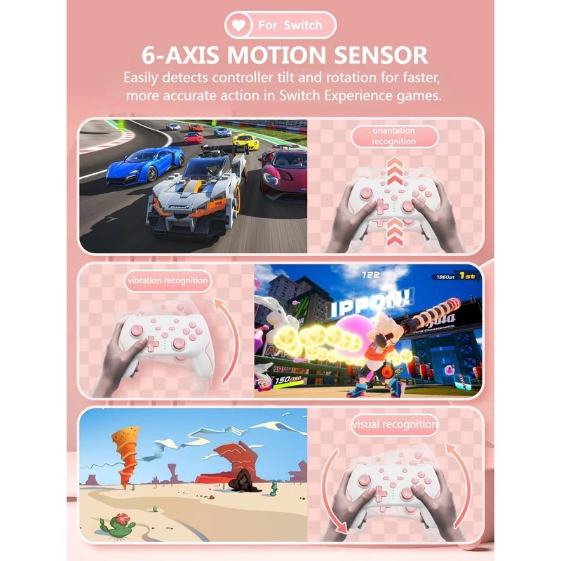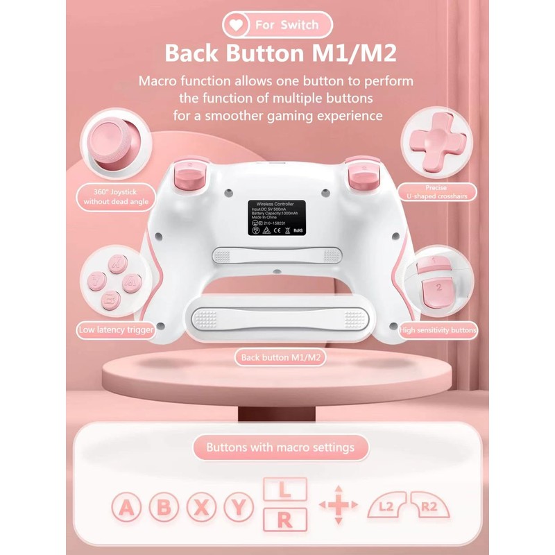 • 🎮Unique Design: The Pink-White collocation design is inspired by Romance and love.Pink is no longer a girl's exclusive color scheme, and many boy players also like this color very much.The appearance index of the controller is very high, you can take it as a gift. I hope you can get happiness in love and games.