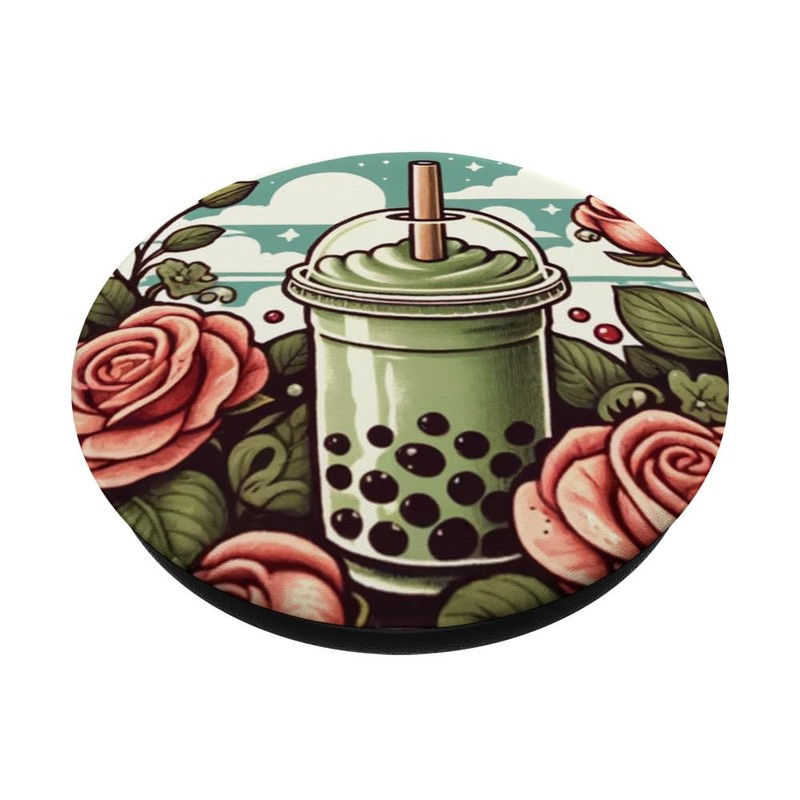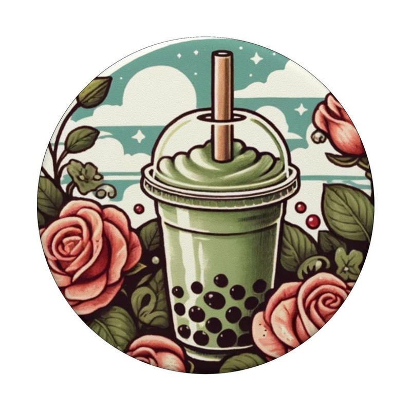 Matcha Fun Boba Illustration Milchtee und Boba Liebhaber PopSockets mit austauschbarem PopGrip