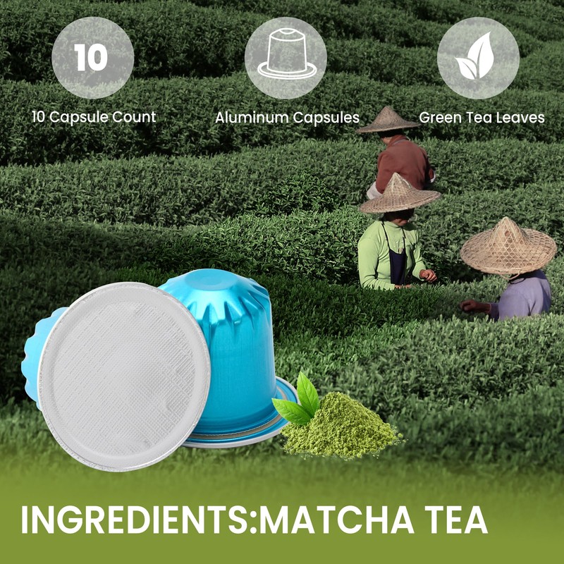 Matcha Green Tea Pod USDA Organic, Matcha Pods for Nespresso Original,Compatible Nespresso Tea Pods,Recyclable Aluminium Capsules,10 Count (Pack of 1)