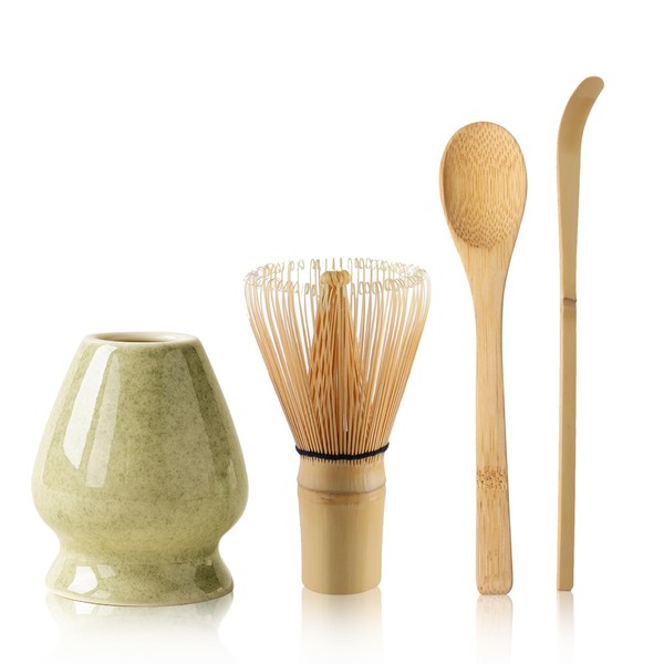 Matcha Tea Set with Whisk and Spoon, Matcha Whisk Kit with Ceramic Whisk Hold...
