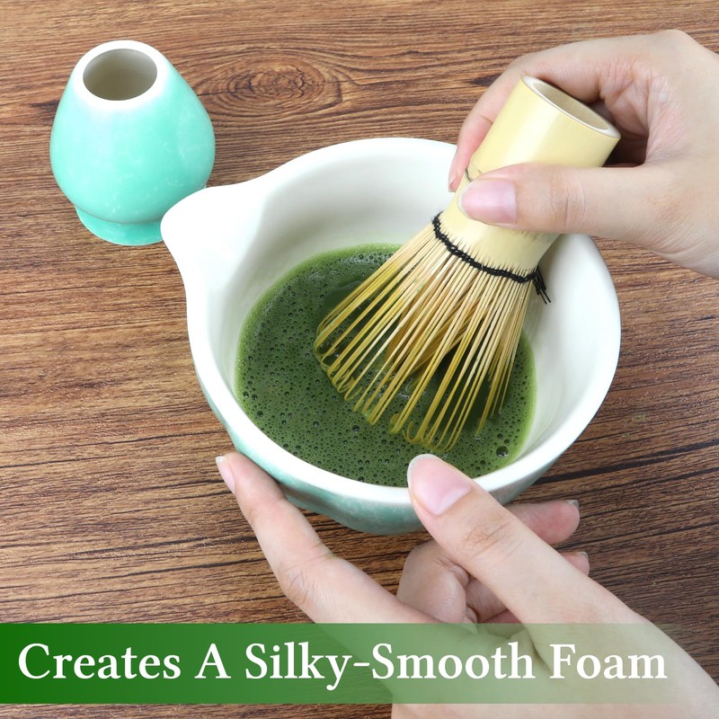 - Handcrafted Bamboo Whisk for Perfect Froth: Achieve a luxuriously smooth, velvety matcha every time. Our authentic bamboo whisk features ~76 precisely split, hand-tied tines designed to efficiently whisk and blend powder into a rich, airy froth. Includes holder to preserve whisk shape