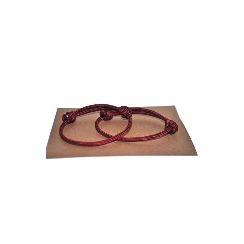 Matching minimalist red adjustable paracord bracelets, family, couples, and good luck protection card