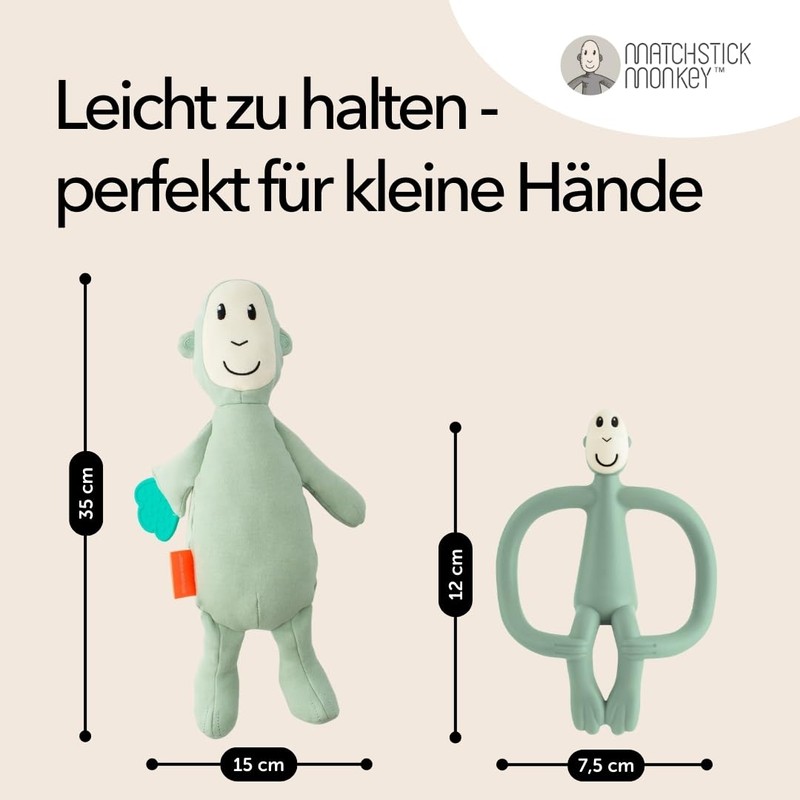 Matchstick Monkey Gift Set - Teether & Plush Toy - Baby Teething Aid with Soft Nubs - Cuddly Toy with Teething Application - BPA Free & Soft Cotton - from 3 Months (Monkey Mint Green)