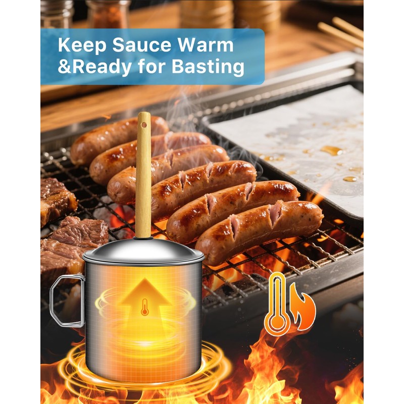 - 🥩 Protect & Storage & Heat Sauce 🥩 Our Integrated brush-lid is well-sealed, protects your sauce from dust and bugs, doubles as a space-saving storage container when not in use, and heats directly on the grill to keep sauce warm/fresh—so you can baste sauce anytime during grilling.