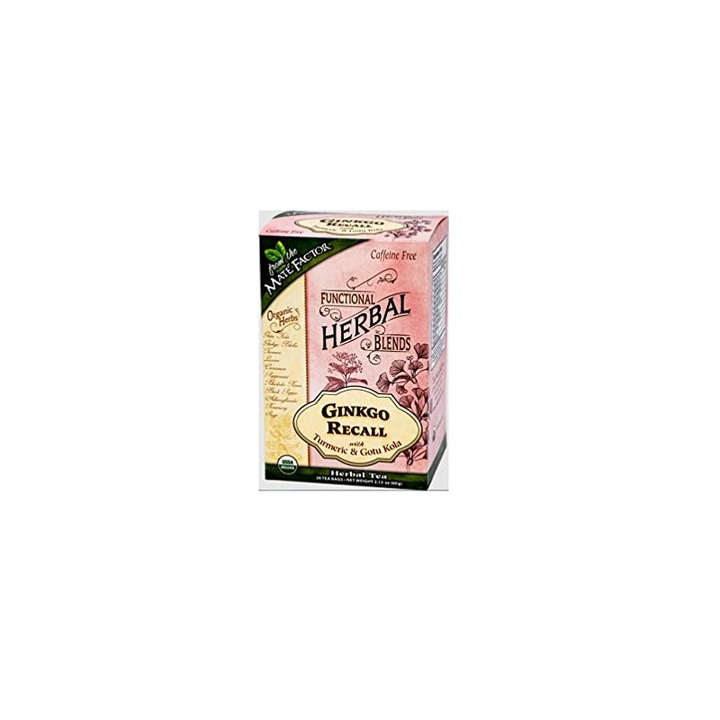 Mate Factor Organic Ginkgo Recall with Turmeric and Gotu Kola Herbal Tea, 20-piece - 3 pack