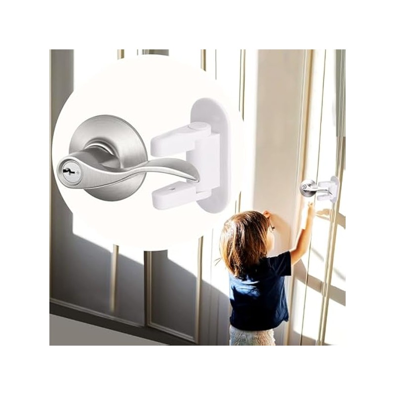 Matenf Childproof Door Lever Lock (2 Pack) Prevents Toddlers Pets From Opening Doors, Door Handle Lock for Babyproofing, Durable Safe ABS Material Strong Adhesive, No Drill Tool Needed Easy to Install
