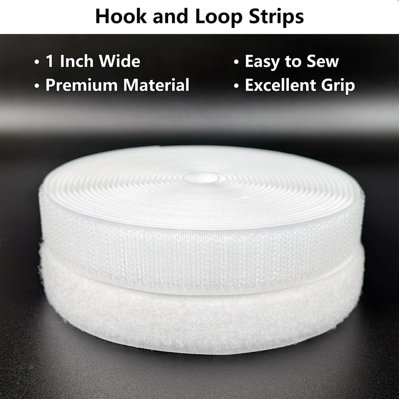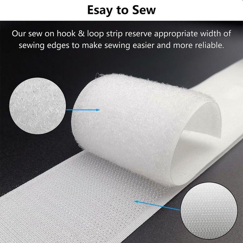 - Sew on Hook Loop Fastener - 1 inch hook and loop strips without adhesive, easy to sew on to clothing, fabrics and leathers, easy to sew by machine or hand. Created for repeated use, replacing buttons and zippers.