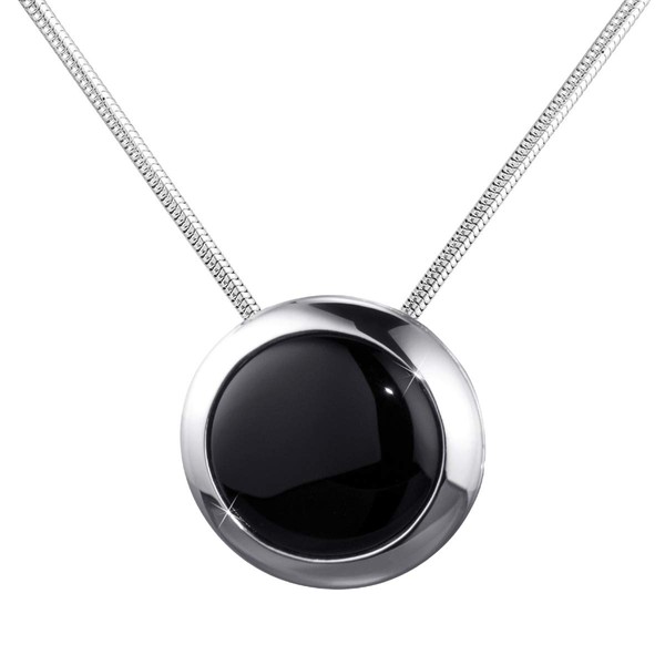 Materia KA-431 Women's Pendant Onyx Black Round 925 Silver Pendant Black Stone Large with Chain Including Case, Black Onyx Gemstone, Onyx
