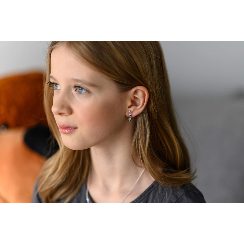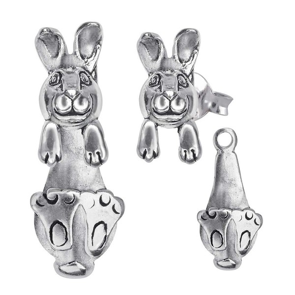 Materia SO-386 Women's Rabbit Stud Earrings 925 Silver 2 in 1 Movable in Gift Box, Sterling Silver