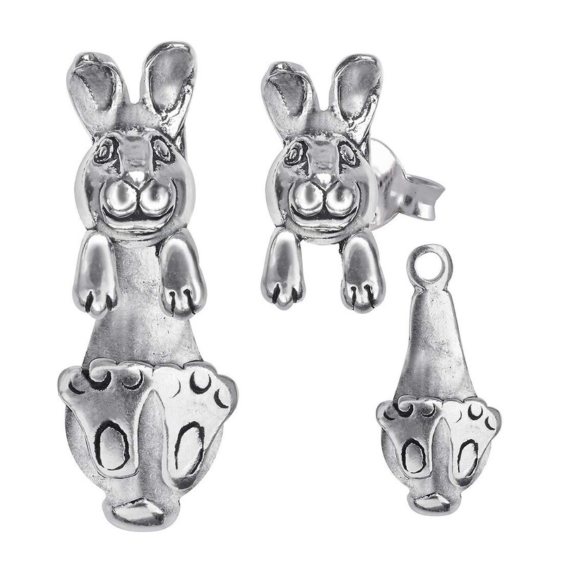- Unusual rabbit stud earrings made of 925 silver in antique look. The special feature of these earrings is the movable body as well as the adjustable length.