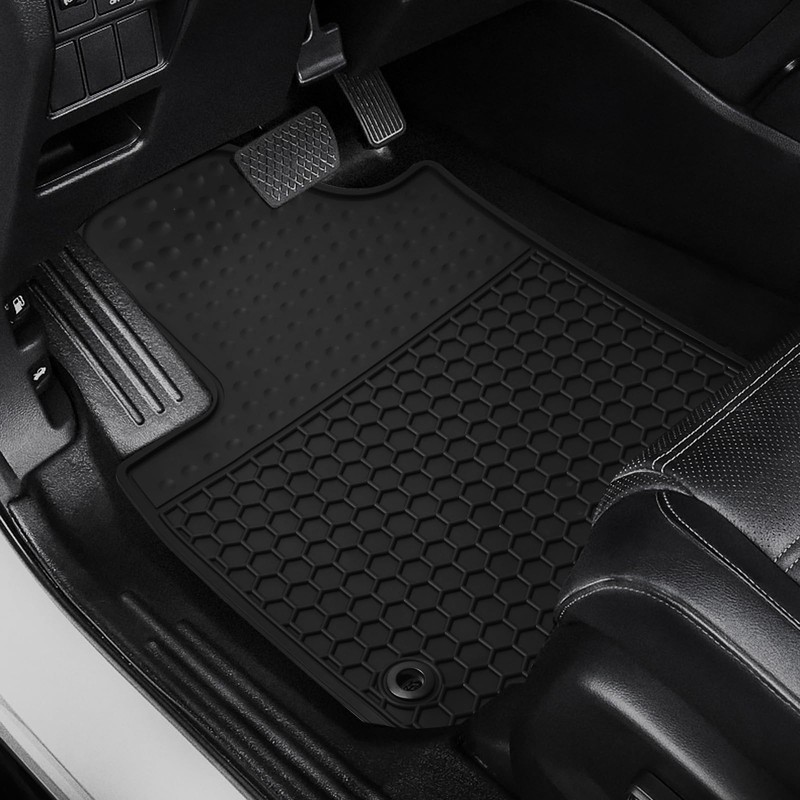 - All-weather Protection Car Floor Liners: The product is made from odorless rubber and is designed to prevent the deformation of high temperature or low temperature. The surface is like a tire pattern design, which can enhance the anti slip function.