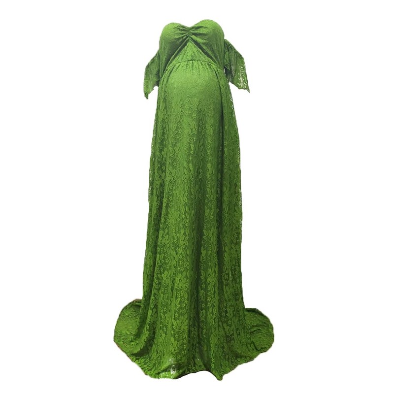 Maternity Photography Props Floral Lace Dress Fancy Pregnancy Gown for Baby Shower Photo Shoot (XL, Olive)