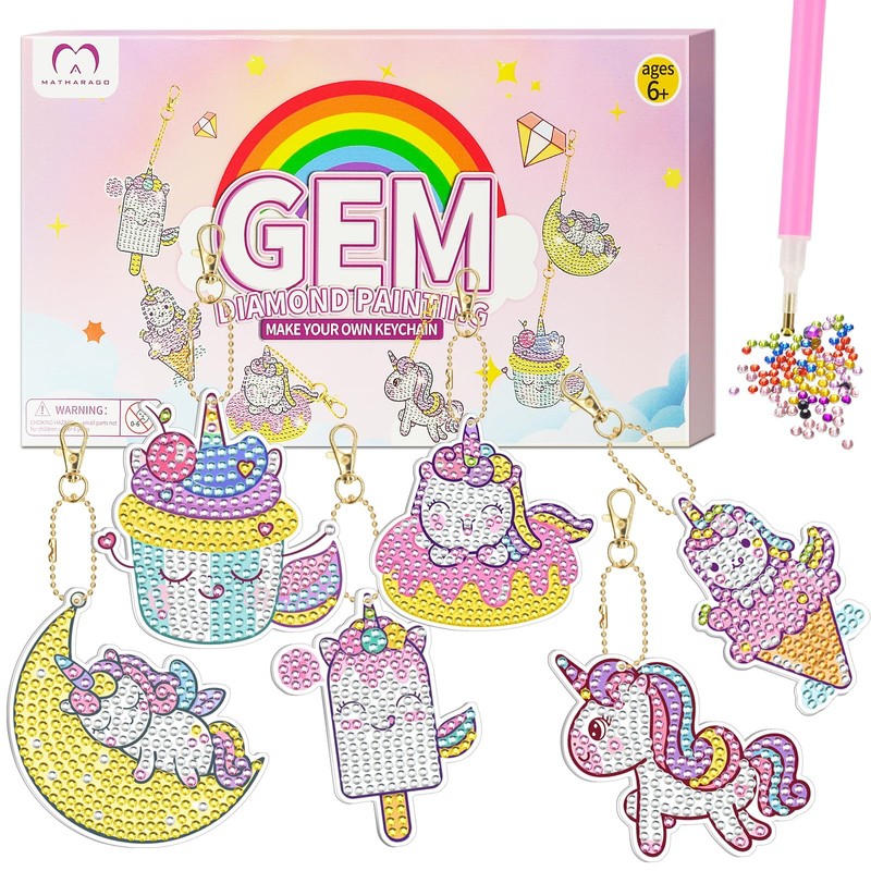 MATHARAGO MATHARAGO Diamond Art for Kids 6 Pcs DIY Diamond Painting Keyrings Set, Painting by Number Gem Keychains Craft Kits for Kids Ages 6-12, Gifts for Birthday, Back to School(DJS-02)