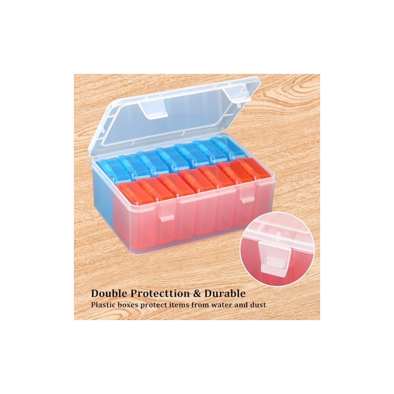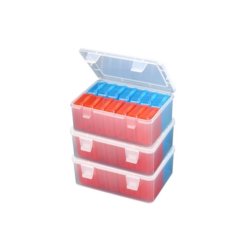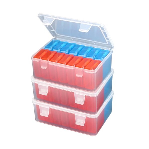 - PACKAGE INCLUDE: 3 large outer box + 42 small inner boxes. The outer box size is 6.5" L x 4.7" W x 2.36" H, the Inner box size is 2.16" L x 2.16" W x 0.79" H. The inner small box has three colors, 7 red and 7 blue each. The colorful inner box makes your organization easier and more enjoyable.