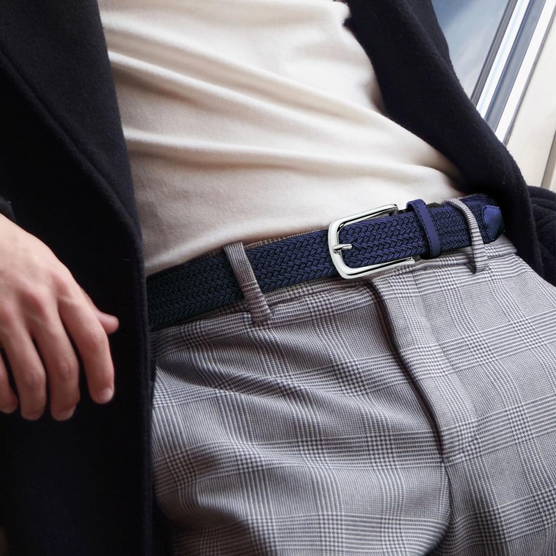 - Durable material: the fabric belt is made of an elastic polyester blend and a nickel-free zinc alloy buckle. The belt end is reinforced with a leather cap, which makes the belt durable.