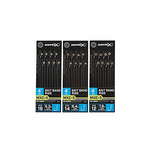 Designed for use with a method or pellet feeder. Ideal for tying pellets or dumbell boilies. MXC-3 PTFE coated hooks feature an outward twisted eye to enhance the presentation of the hair rigs. Precisely bound to 10cm that can be safely stored in matrix hook length sleeves. Durable matrix bait bands with Jamie Hughes band in a loop method. The band in the loop provides better presentation and extends the life of the bands. Made from power micron monofilament. Available in 3 sizes - 12 - 0.20 (7.9lb / 3.6kg) 14 - 0.18 (6.4lb / 2.9kg) 16 - 0.16 (5.3lb / 2.4kg)