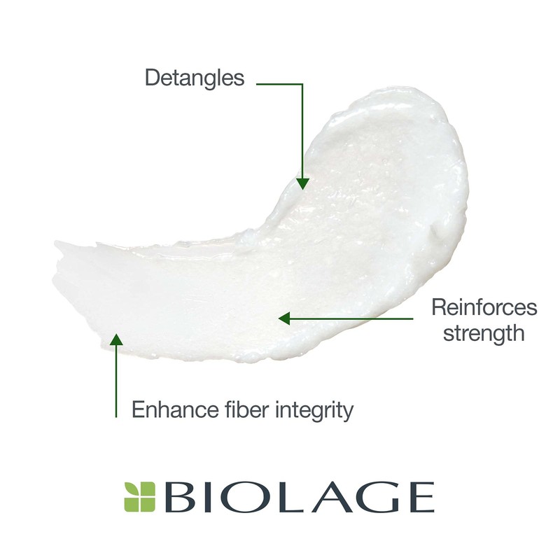 - Biolage Fiberstrong Conditioner formulated with intra-cylane and bamboo, known for its resilience Biolage Advanced Fiberstrong Conditioner hydrates damaged, frizzy hair, strengthening strands to help prevent future hair breakage and split ends