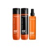 The Matrix Total Results Mega Sleek Trio Bundle includes the Mega Sleek Shampoo, Conditioner, and Iron Smoother to help control rebellious, unruly hair and manage frizz against humidity for smoothness.