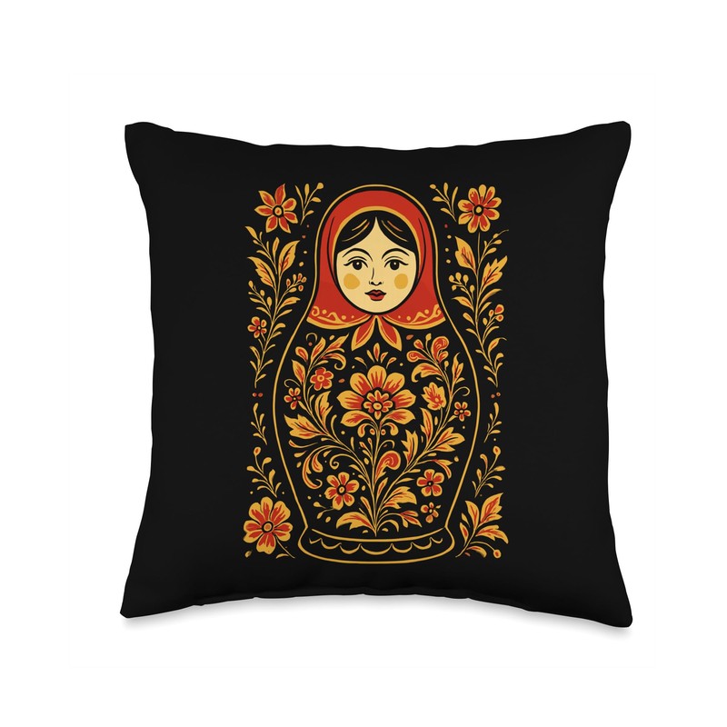 Matryoshka Doll Art Russian Nesting Wooden Stacking Set Throw Pillow