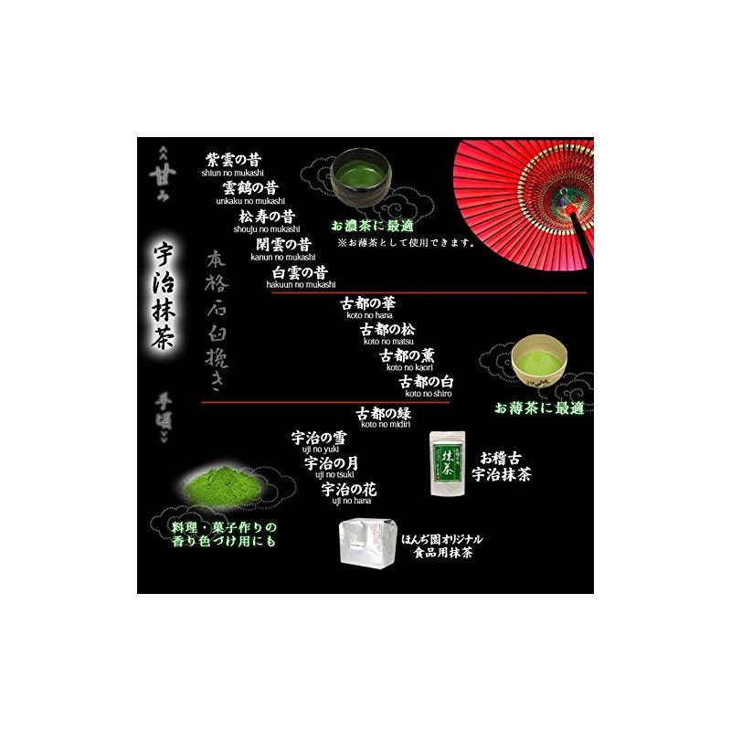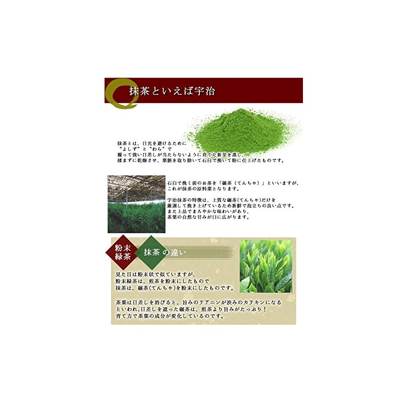 - Genuine stone grind! Uji matcha tea with no additives, no coloring. Matcha tea ground in the stone has excellent taste, color, and aroma