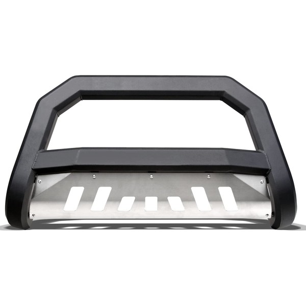 Matte Black AVT Style Bull Bar Brush Push Front Bumper Grill Grille Guard with Aluminum Skid Plate Compatible with 08-10 Ford F250 / F350 / F450 / F550 Superduty
