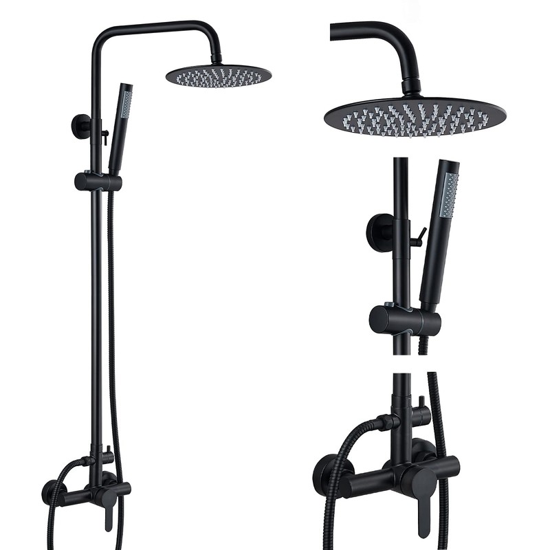 Matte Black Outdoor Shower Fixture SUS304 System Combo Set Rainfall Single Handle High Pressure Hand Spray Wall Mount 2 Dual Function