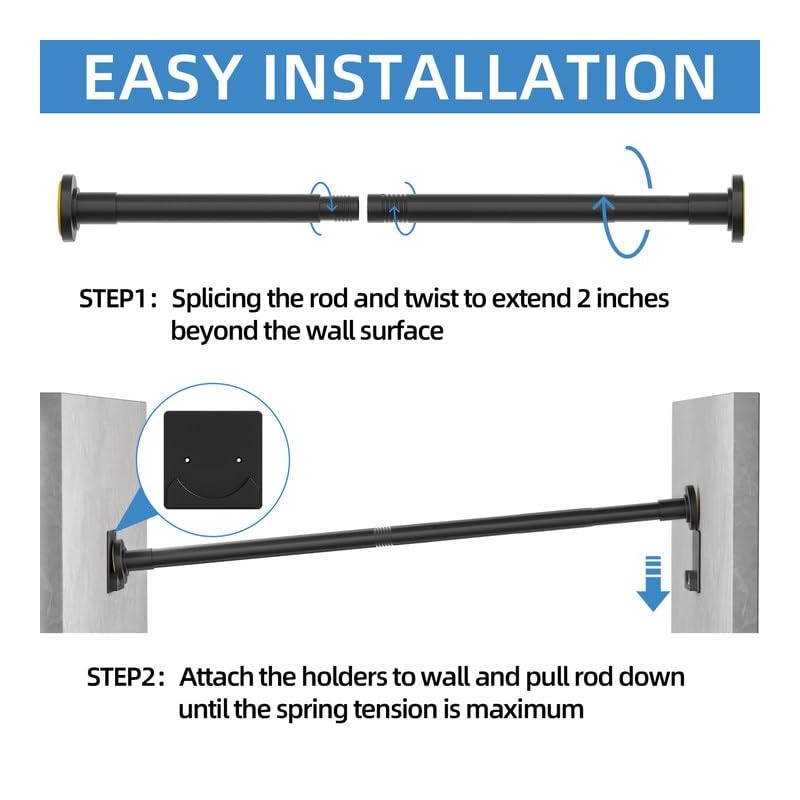 CorkLatta Matte Black Shower Curtain Rod,1 Inch Diameter Stainless Steel Adjustable Spring Tension Rods 32 to 80",with Holders,Anti-Slip,Curtain Rods No Drilling(1 Pack)