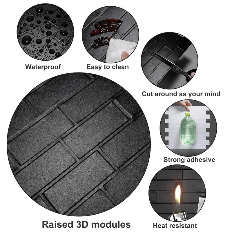- ❃PREMIUM MATERIALS: Black peel and stick tiles is made of eco-friendly materials! Color fadeless, the peel and stick wall tiles has good durability, waterproof and heat resistance.